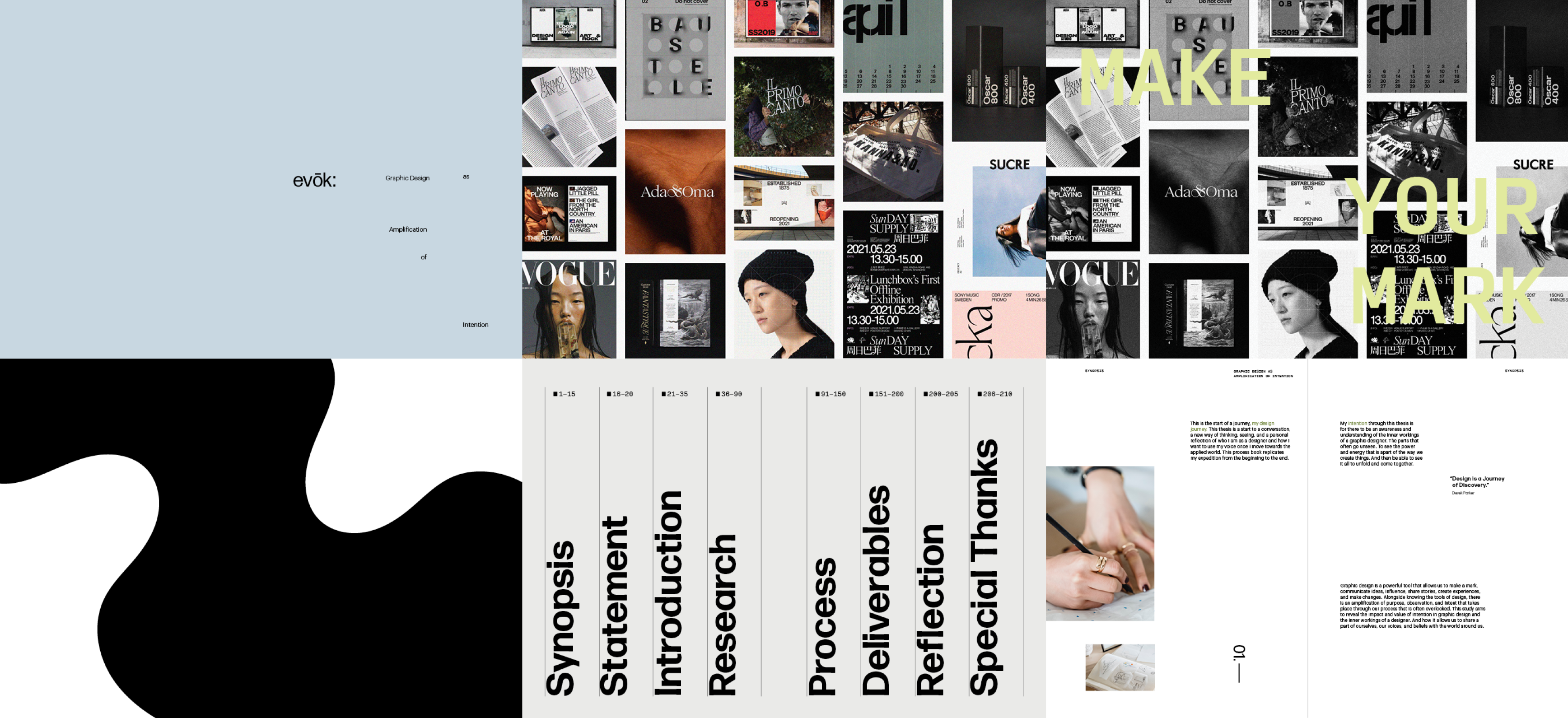 Graphic design is a powerful tool that allows us to make a mark, communicate ideas, influence, share stories, create experiences, and make changes. Alongside knowing the tools of design, there is an amplification of purpose, observation, and intention that takes place through our process that is often overlooked. This study aims to reveal the impact and value of intention in graphic design and the inner workings of a designer. And how it allows us to share a part of ourselves, our voices, and beliefs with the world around us.
